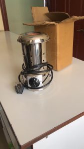 Um 14:15 meldete sich Lambert, dass er jetzt in der CSSD sei. Wir gingen sofort los, um ihn in den Räumen der CSSD aufzusuchen. Er hatte in der Zwischenzeit auch ein entsprechendes Exemplar eines elektrischen Bunsenbrenners gefunden, welches in Ruanda gekauft werden kann. Da auch der Preis dafür annehmbar war, holten wir noch von Solange die Zustimmung zu diesem Gerät ein und bestellten ihn bei Lambert.