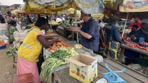 Bevor es weiter ins HC Kamonyi ging, besuchten wir noch kurz Jean Paul’s Schwester, die hier arbeitete. Danach kurzer Stopp an einem Markt, wo Jean Paul Ananas kaufte und Erich sich unter die Menge mischte.
