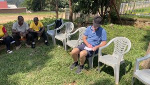 Jean Paul setzte uns anschließend im Kibogora Hospital ab, da wir eine Verabredung mit Dr. Bernard hatten, dem ärztlichen Direktor des Krankenhauses. Er hatte sich bereit erklärt für unser Jubiläumsbenefizkonzert eine kurze Grußbotschaft auf Video zu sprechen. Nach insgesamt 4 Versuchen war die Aufnahme im Kasten.
