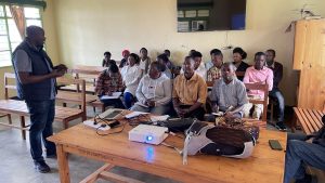 Jetzt mussten wir uns beeilen um rechtzeitig zur Onlineschulung der Labormitarbeiter/innen im Kibogora Hospital zu sein. Als wir im Labor ankamen, saß Solange, die Leiterin, ziemlich verzweifelt vor ihrem Laptop und versuchte vergeblich dem Meeting beizutreten. Nach unserer Hilfe gelang es endlich nach 20 Minuten dem Meeting beizutreten. Die Mitarbeiter/innen der Mikrobiologie der Universität des Saarlandes in Homburg hatten wirklich viel Geduld. Nachdem wir dann noch die instabile WLAN-Verbindung durch eine stabilere LAN-Verbindung ersetzt hatten, konnten die Labormitarbeiter/innen der Schulung ungestört folgen.