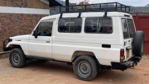 Da die Wege zu den Health Centern vor allem in der Regenzeit äußerst schlecht sind, bedienten wir uns als Fahrzeug eines zwar schon alten aber dafür bestens geeigneten Toyota Land Cruisers. Oft genug geriet die Kiste aber dennoch in eine bedrohliche Schieflage.