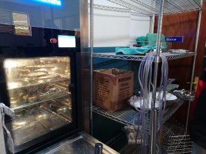 Dr. Feltes und Dr. Weber besuchten zunächst die von „Osteomyelitishilfe e.V.“ gespendete Zentralsterilisation. Dort konnten sie feststellen, dass zwar das Reinigungs-Desinfektions-Gerät funktionierte, aber einer der beiden Matachana-Autoclaven schon seit 2 Monaten defekt war.