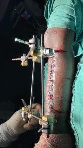 Dr. Feltes und Dr. Weber hatten für heute geplant die kleine Chantal (Name geändert) zu operieren. Geplant war den Tibiadefekt rechts mit einem Fibulatransfer zu decken. So gegen 13 Uhr wurden die beiden in den OP gerufen.