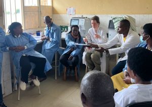 Dr. Feltes und Dr. Weber trafen sich mit Claudine auf der chirurgischen Station um insgesamt 5 Patienten nachzuuntersuchen.