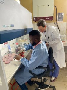 Im Februar 2025 hatte unser Verein dem Kibogora Hospital ein mikrobiologisches Labor im Wert von 60.000 € eingerichtet. Nach anfänglichen Schulungen des Personals konnte das Labor im Juni 2026 seinen Betrieb vollumfänglich aufnehmen. Dennoch verblieb, nach Rücksprache mit Solange, der Laborleiterin, noch ein erheblicher Schulungsbedarf. Nach Kontaktaufnahme mit Prof. Dr. Sören Becker, dem Leiter des Instituts für Hygiene und Mikrobiologie an der Universität des Saarlandes, erfolgten zunächst online Schulungen durch sein Team. Da sich die Mitarbeiter der Mikrobiologie sich auch bereit erklärten vor Ort Schulungen durchzuführen, finanzierte unser Verein 2 Mitarbeitern die Reise nach Ruanda. Dr. Erich Feltes und Dr. Michael Weber begleiteten das Team um es am Kibogora Hospital vorzustellen und einzuführen und um ihnen behilflich zu sein ihre Schulungen durchzuführen. Die Ärzte planten ebenfalls Kinder mit Osteomyelitis nachzuuntersuchen, die sie oder die Ärzte des Kibogora Hospitals behandelt hatten.