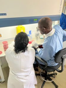Auch das Arbeiten mit der Lamina Airflow Werkbank, die unser Verein gestiftet hatte, wurde geübt. Bisher war sie noch nicht in Betrieb genommen worden. Allein deshalb hat sich unsere Reise schon gelohnt.