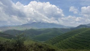 Als wir in Yove mit den Schulungen fertig waren, fing es wieder an zu regnen. Wir beschlossen deshalb nicht den gleichen Weg zurückzufahren, sondern eine riesigen Umweg in Kauf zu nehmen, aber deshalb auf besseren Wegen zu fahren. Wir nahmen die Route über Cyiviguza, wo wir gestern bereits waren. Der Weg führte durch eine wundervolle Teekulturlandschaft und hat sich schon deshalb gelohnt.