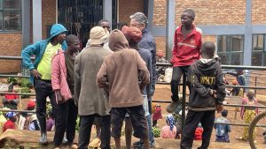 Bevor es weiter ins HC Kamonyi ging, besuchten wir noch kurz Jean Paul’s Schwester, die hier arbeitete. Danach kurzer Stopp an einem Markt, wo Jean Paul Ananas kaufte und Erich sich unter die Menge mischte.